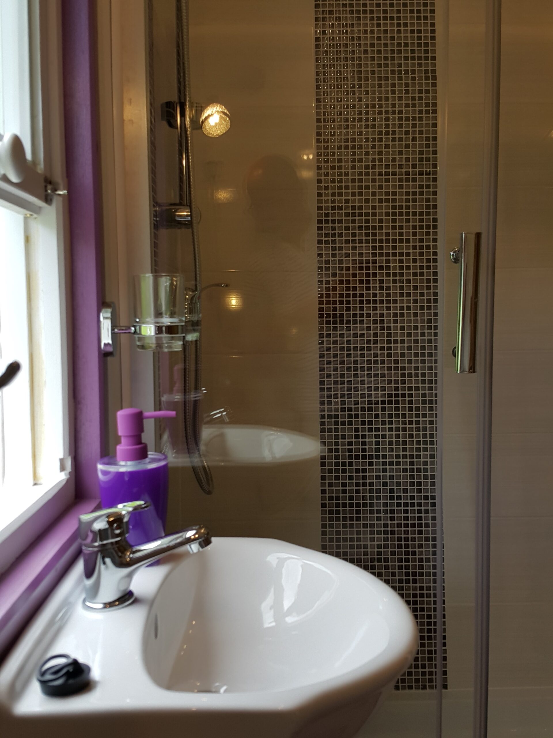 Wóz wyposażyliśmy w funkcjonalną łazienkę z kabiną prysznicową , wc i umywalką.