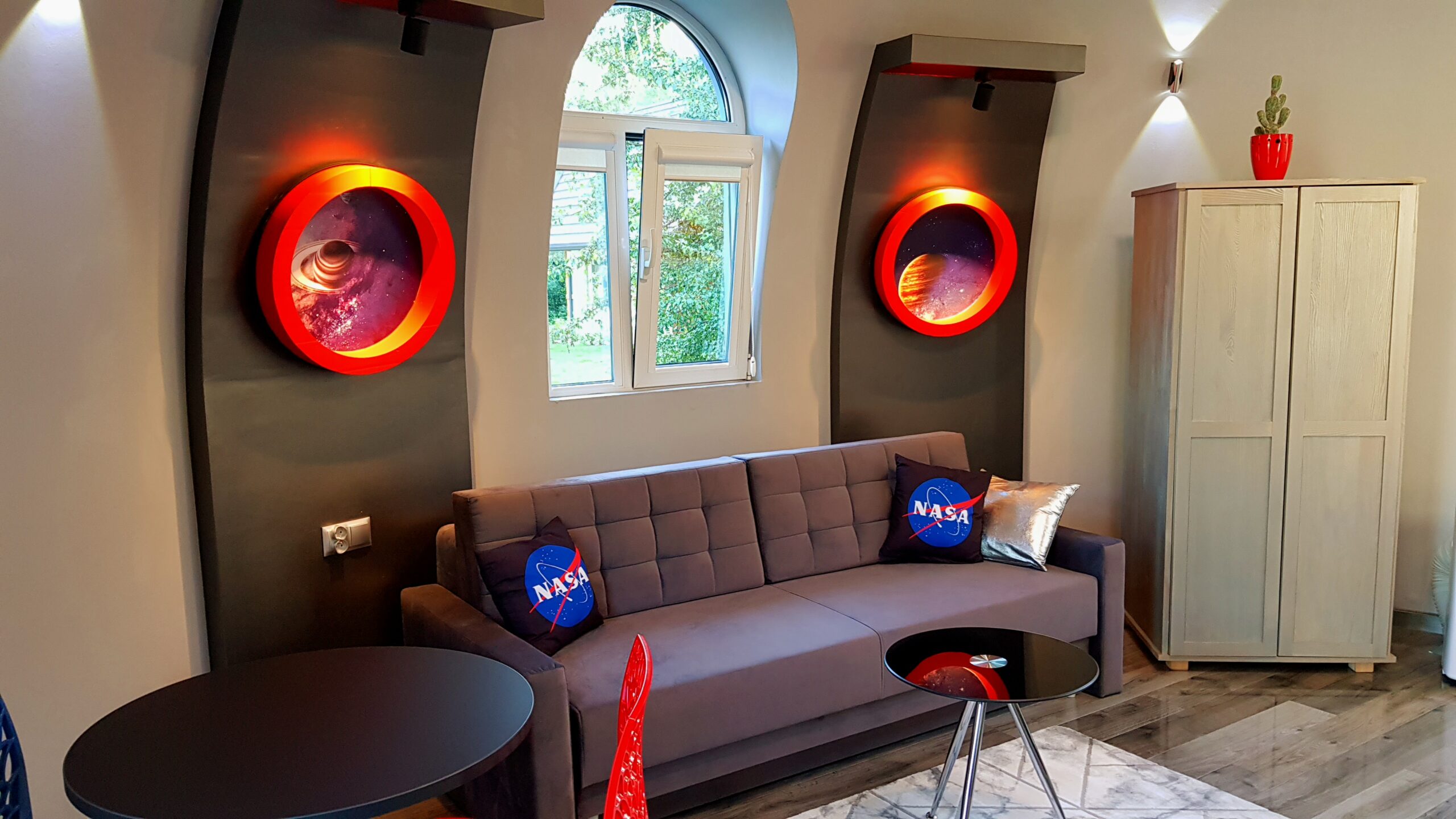 Oferujemy Państwu wypoczynek w niezwykłym domku kopułowym , zwanym też domkiem sferycznym. Domek został uruchomiony w pierwszych dniach lipca 2020 r. Wystrój domku został oparty na motywach kosmicznych , stąd też nazwaliśmy ten domek Kosmicznym. W 2022 r. na domku wylądowali kosmici , którzy pozostawili swój pojazd na dachu . Stąd w nazwie pojawiło się UFO ! Całość jest niepowtarzalna i bardzo stylowa, wręcz kosmiczna .