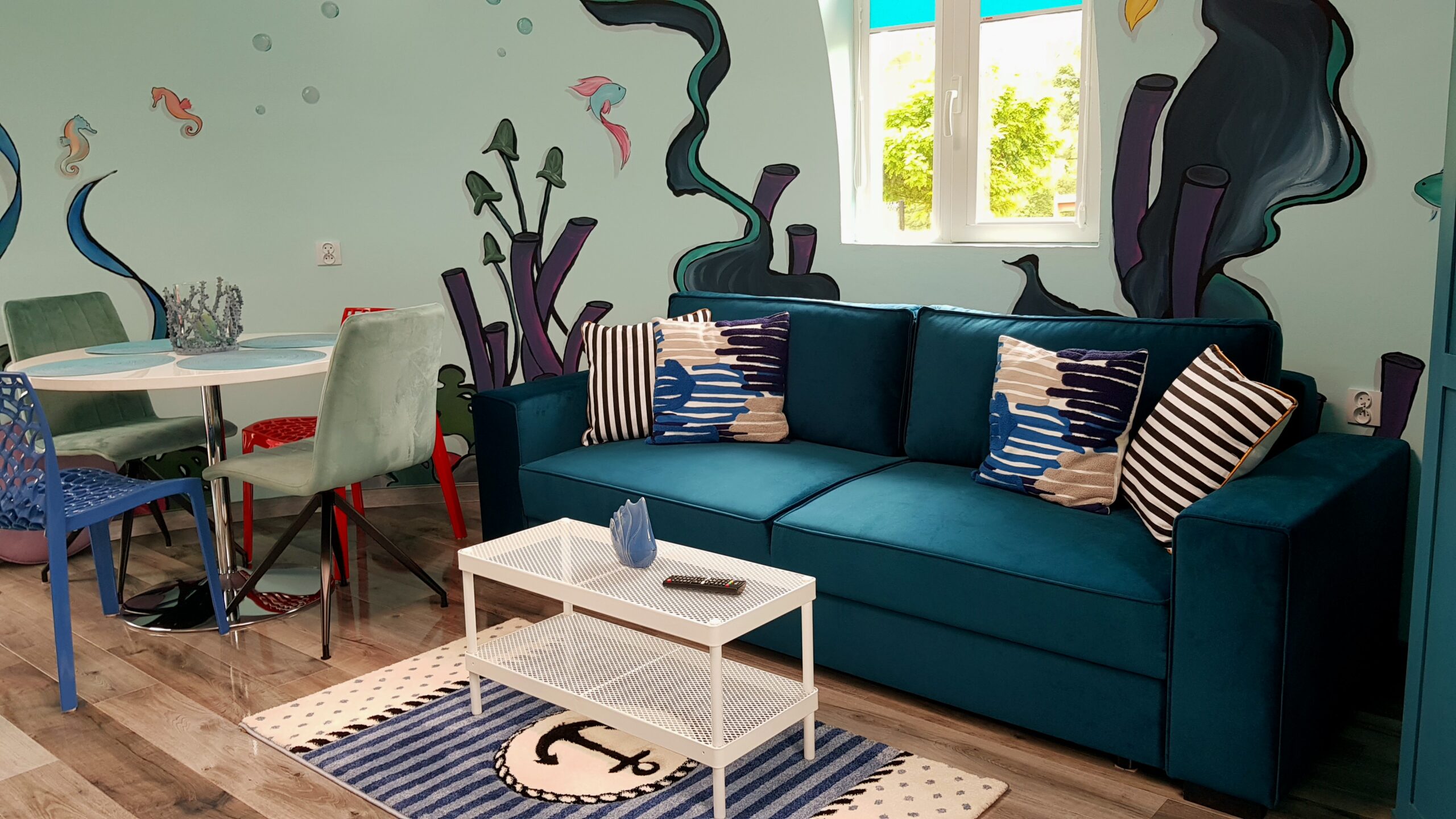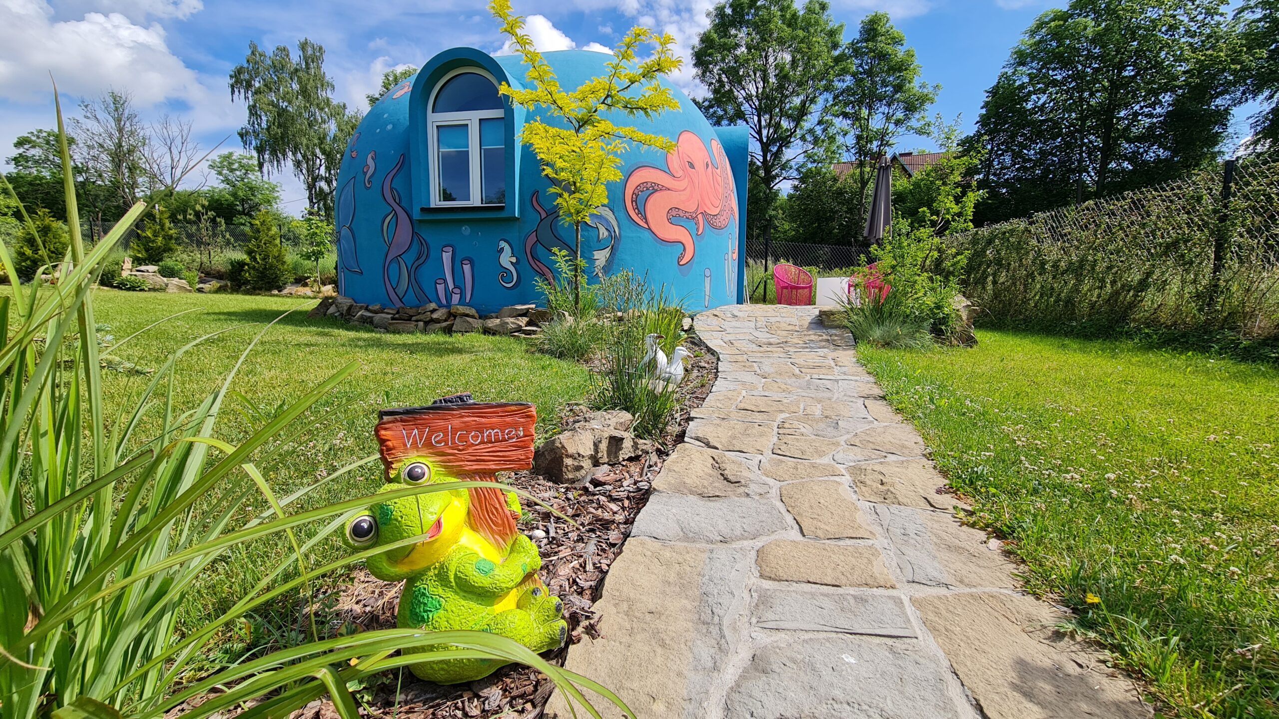 Oferujemy Państwu wypoczynek w niezwykłym domku kopułowym , zwanym też domkiem sferycznym. Domek został uruchomiony w pierwszych dniach lipca 2020 r. Wystrój domku został oparty na motywach baśni o Małej syrence , stąd też nazwaliśmy ten domek Morskim . Całość jest niepowtarzalna i bardzo stylowa, wręcz bajkowa ( jak przystało na domek w Bajkowej osadzie)