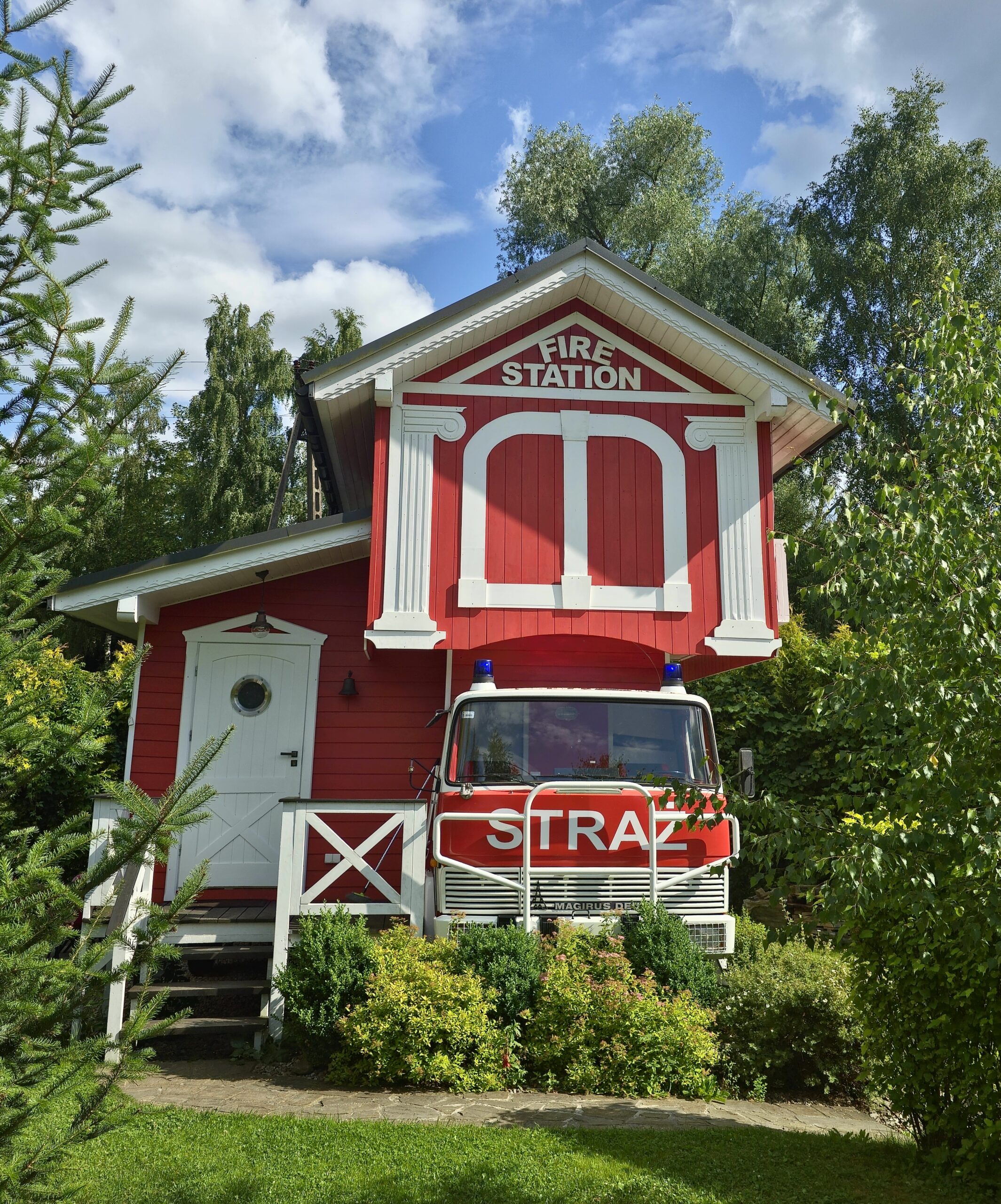 Domek powstał na bazie prawdziwego , zabytkowego wozu strażackiego marki Magirus Deutz z 1972 r., który jeszcze rok temu służył w akcjach gaśniczych OSP Staniszcze Małe na Opolszczyźnie.