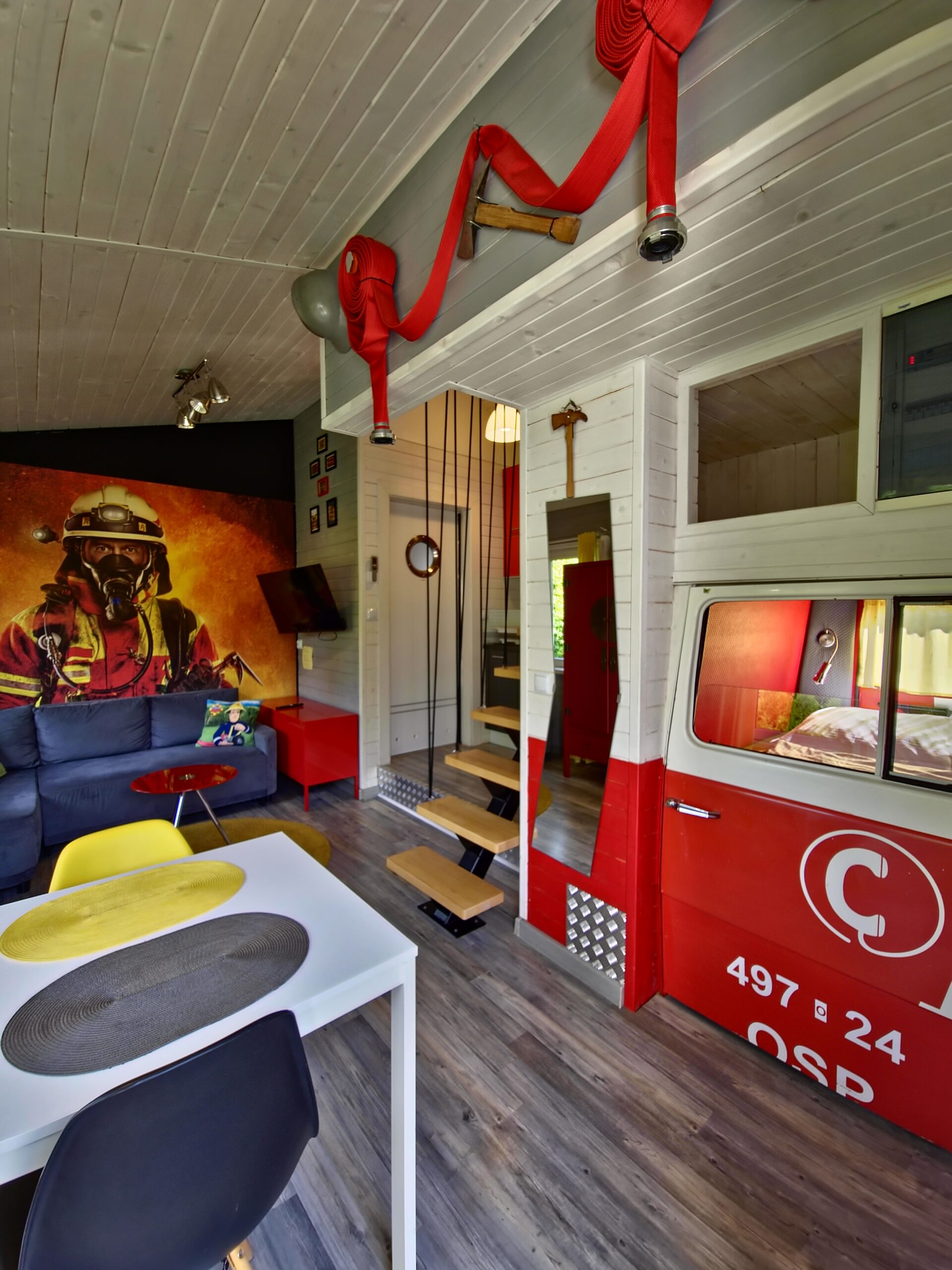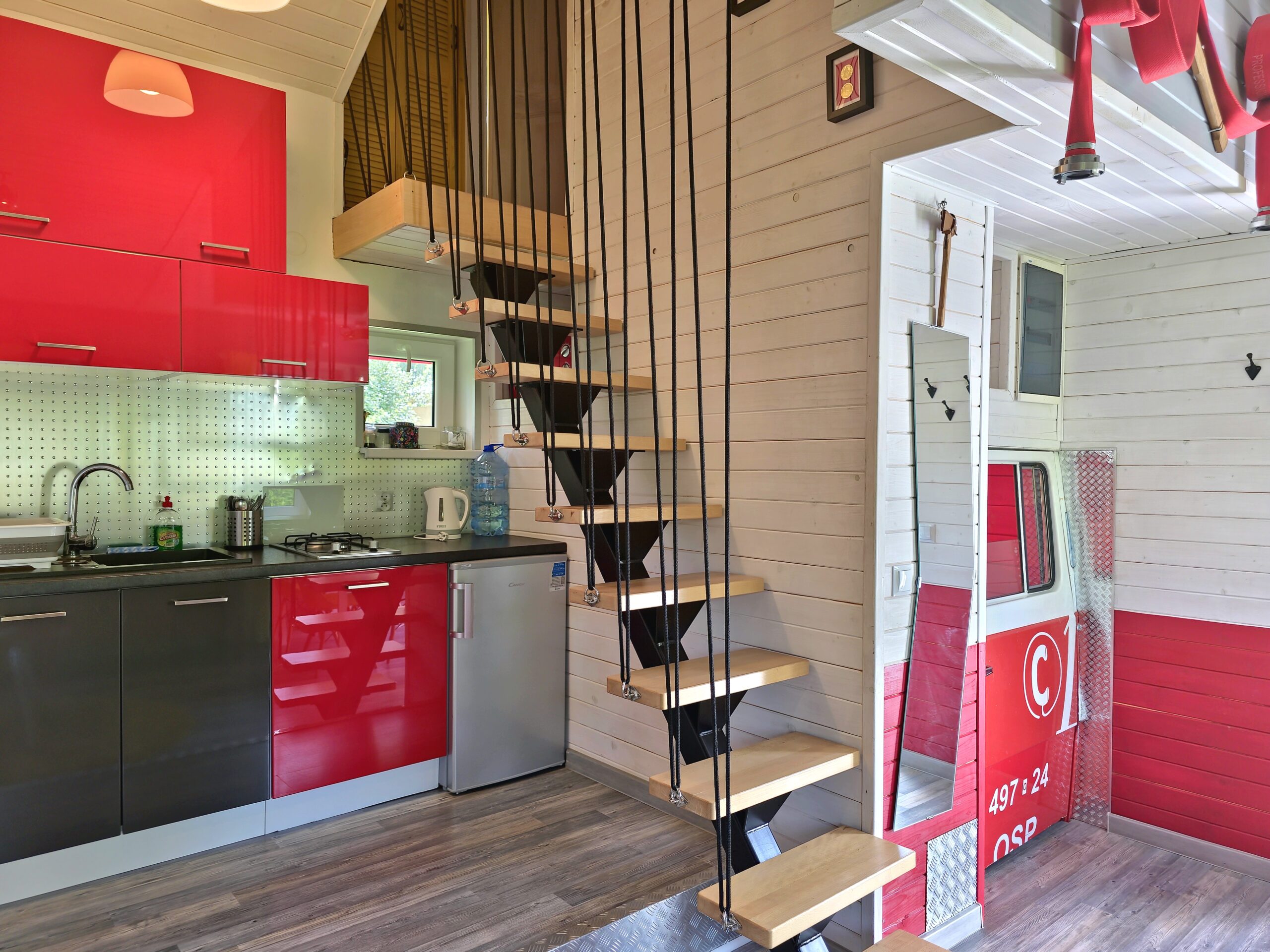 Dzięki wspaniałemu zespołowi fachowców – pasjonatów udało się nam stworzyć z tego wozu unikalny a zarazem niezwykły domek, w którym Wasze dzieci , a być może Wy sami zrealizujecie marzenia , aby chociaż przez kilka dni poczuć się prawdziwym strażakiem. Z pewnością każdy kto do niego zawita , zapamięta to na długie lata.