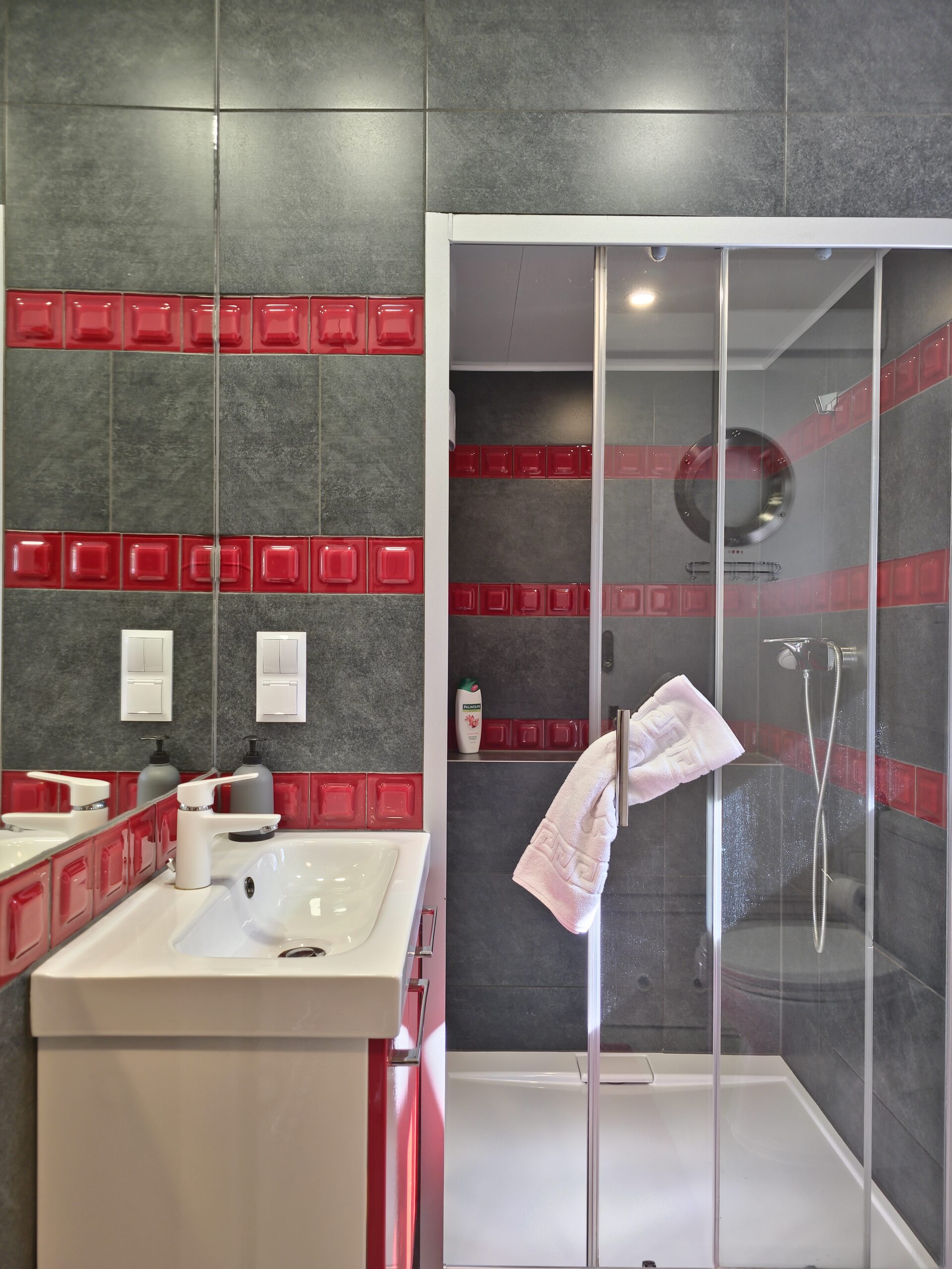 Oczywiście wóz wyposażony jest w elegancką i funkcjonalną łazienkę z dużą kabiną prysznicową.