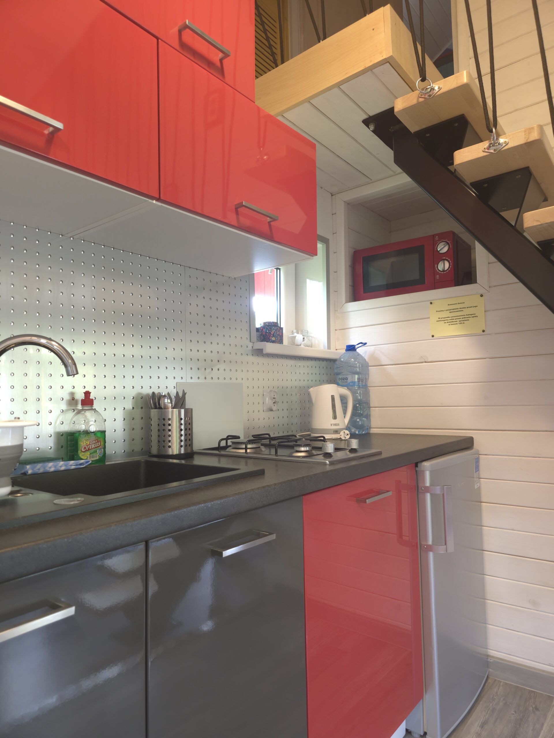 W wozie znajdziecie niewielki aneks kuchenny, który pozwoli na samodzielne przygotowanie posiłków. Znajdziecie tu lodówkę, kuchenkę mikrofalową oraz dwupalnikową płytę gazową.