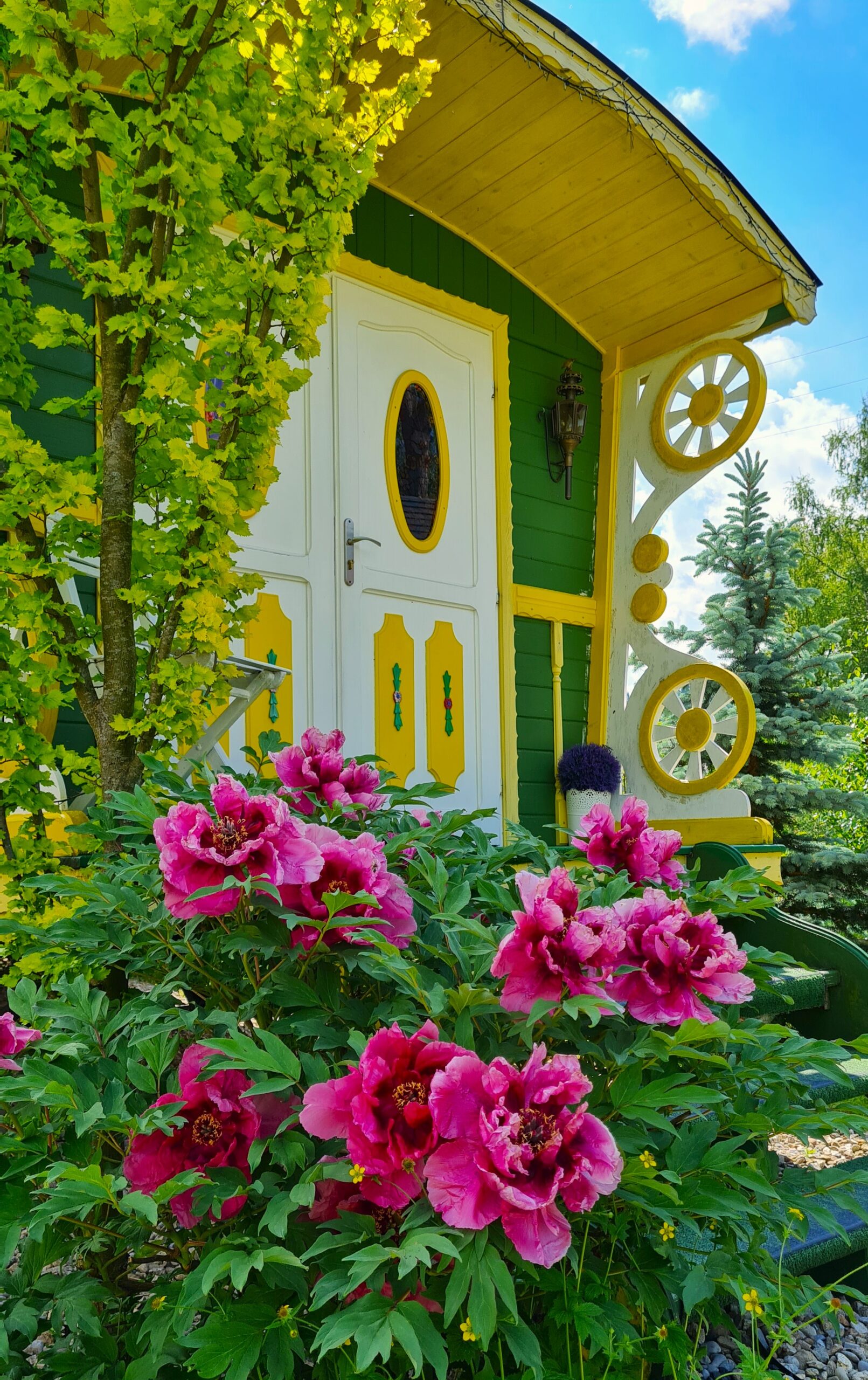 Wóz posadowiliśmy na ogrodzonej i pięknie położonej działce w spokojnej okolicy, w sąsiedztwie osiedla bajkowych, drewnianych domków letniskowych .