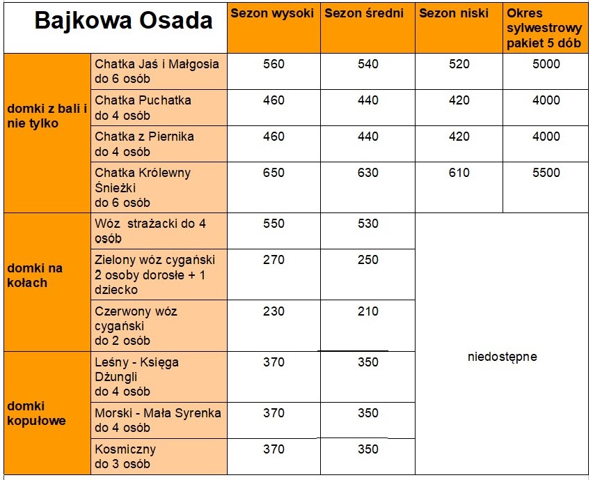 Prices do not include the resort tax, which in Rabka is PLN 5.50 per person for each full day of stay.